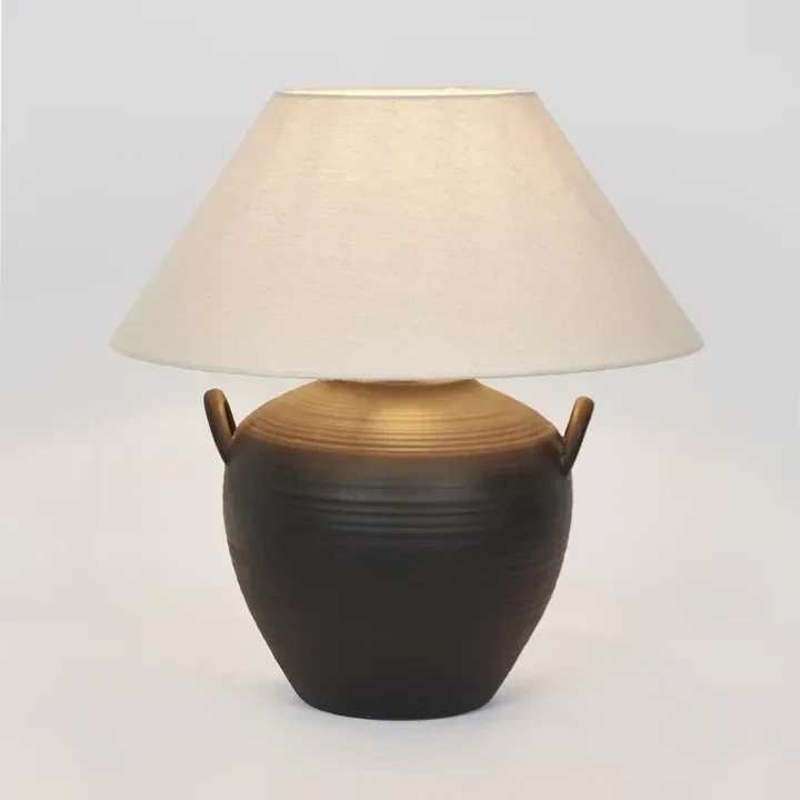 Camille Black Table Lamp & Shade crafted from ceramic, offering a versatile charm. This piece is suitable for various settings.